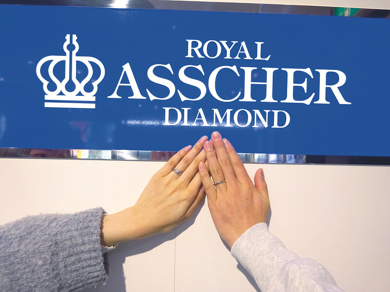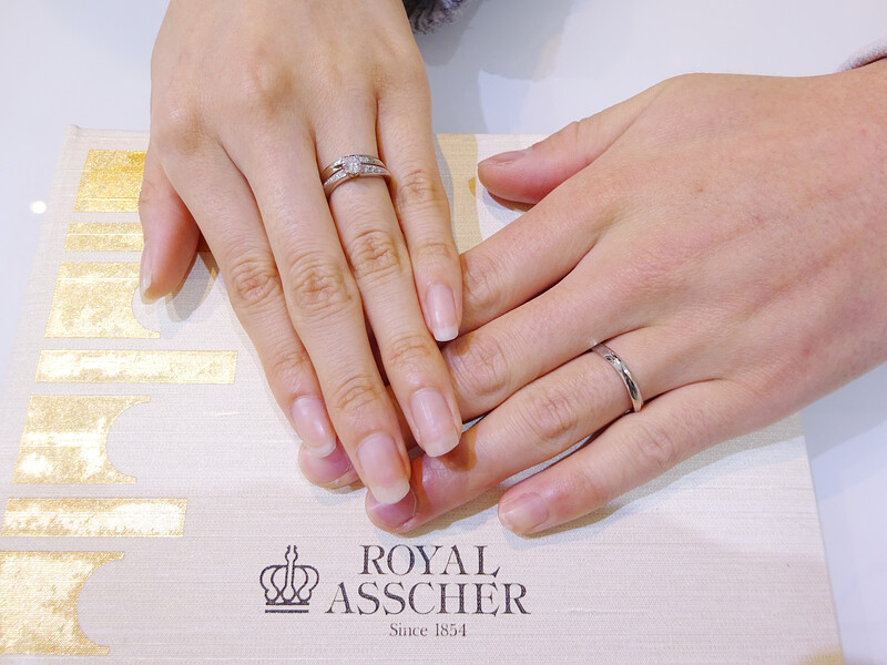 K様、3月5日ご入籍おめでとうございます。彼女のお好きなデザインでエンゲージリングでサプライズプロポーズを大成功されて、重ね付けした時に綺麗で、つけ心地も良いマリッジリングもお選びいただきありがとうございました。ふたりの未来がキラキラと輝き続けますように願っております。また、クリーニングにお気軽にお立ち寄りくださいませ。