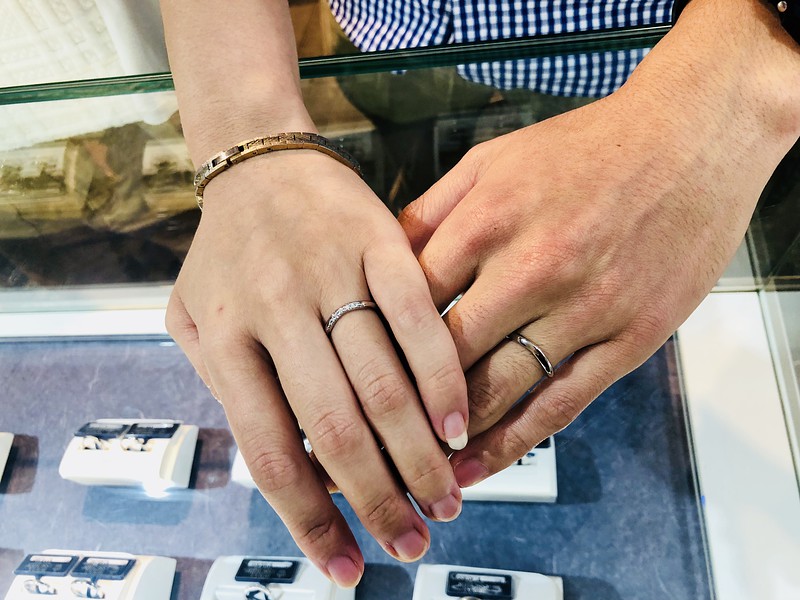 T様H様、この度は当店にて素敵なご結婚指輪をお選び頂き誠に有難うございます。お二人とも本当によくお似合いでした。いつでもクリーニング洗浄致しますので気軽にまたご来店下さい。これからいよいよ新生活始まりますね