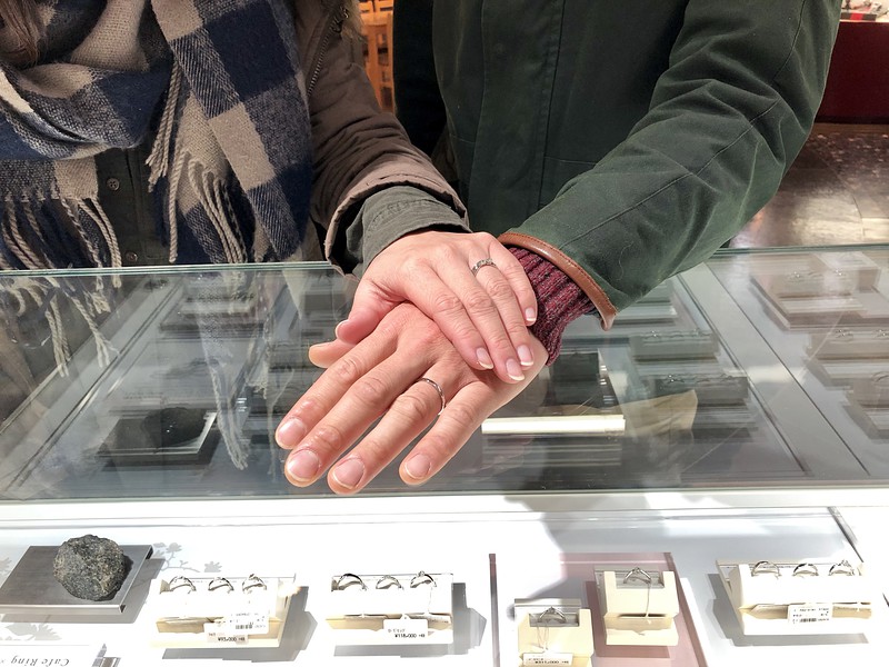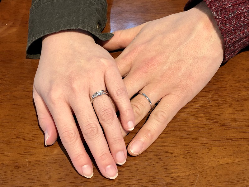 Y様M様、この度は御結婚おめでとうございます。お二人にお気に召して頂ける最高の指輪選びのお手伝いができ私も大変嬉しく思います。ご婚約指輪のマルグリットはM様の雰囲気に合うよう可愛らしいラインで、でも大人の雰囲気を大切に白ダイヤで統一。ご結婚指輪と重ね着けした際デザインも雰囲気もピッタリになりましたね!いつでも綺麗に洗浄するのでまた気軽にお越し下さい。