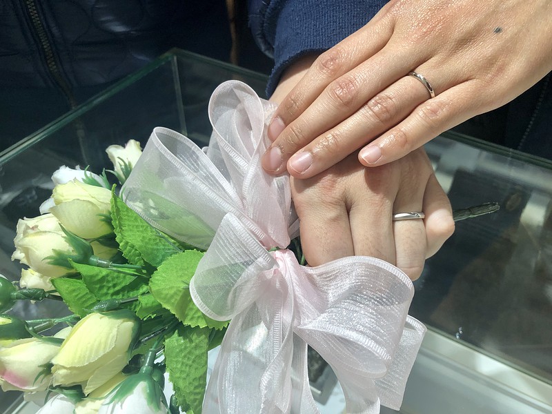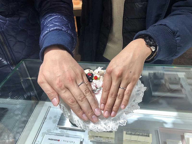 Y&Y様、素敵な指輪が完成でき良かったですね!とてもお二人の手にピッタリなデザインになりました。私もこのデザイン大好きですよ!またいつでもお店に遊びに来てくださいね。指輪を綺麗に洗浄させていただきます。Y&Y様末永くお幸せに!