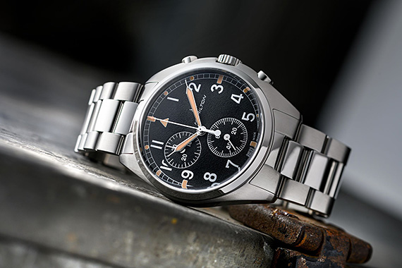 第二次世界大戦中、ミリタリーウォッチの生産に力を注ぎ、驚異的ともいえる100万個以上の軍用時計を供給したハミルトン。米国陸軍において、部隊の全員が秒針を合わせてから任務についたという伝説の“ハックウォッチ”の精神は、今日のカーキにも息づいている。本物のミリタリー・ルーツに根差した機能美は、今なお圧倒的な支持を集めている。