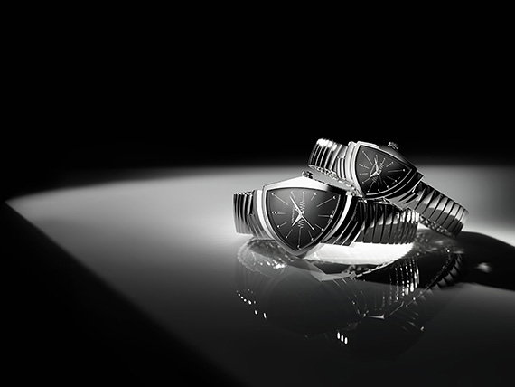 世界初の電池式腕時計として1957年に発表された左右非対称フォルムのアイコンウォッチ。1961年の映画『ブルー・ハワイ』でエルヴィス・プレスリーが着用し、その後公私にわたって愛用したことでも知られている。誕生から半世紀以上経た今日も、その革新性を失うことなく進化を続け、その絶対的な存在感は色褪せることがない。